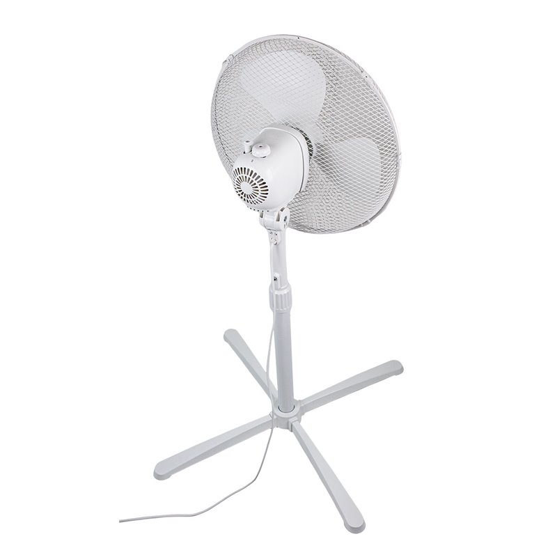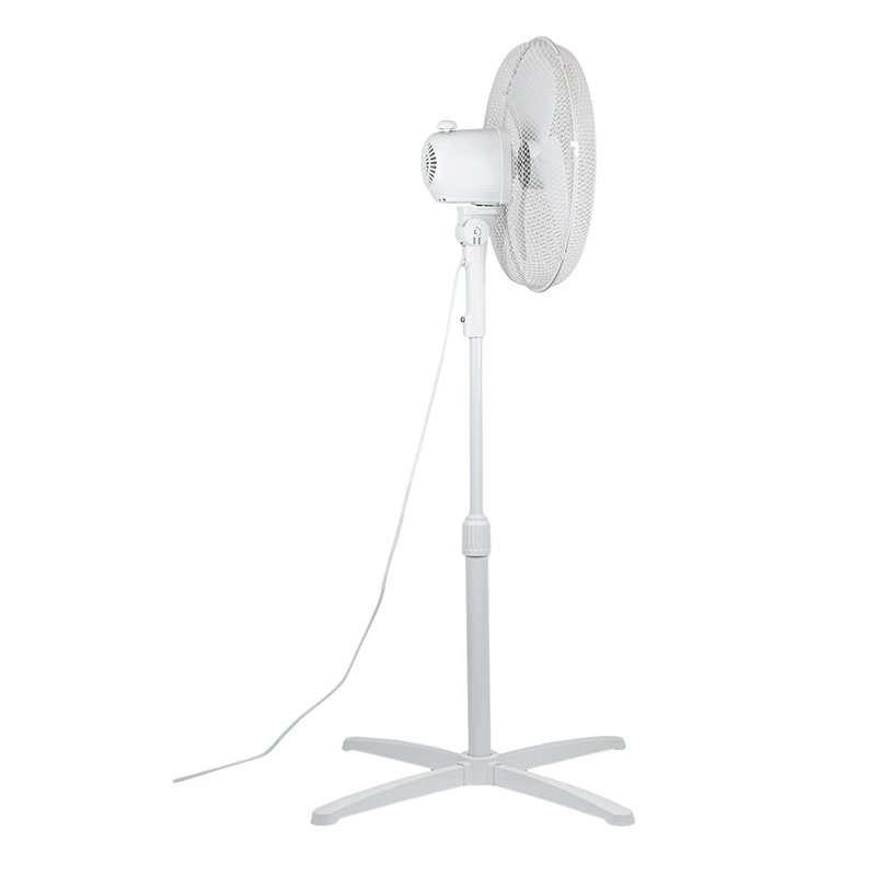 The pedestal fan is robust and impresses with its slim and elegant design, complete with protective grid.