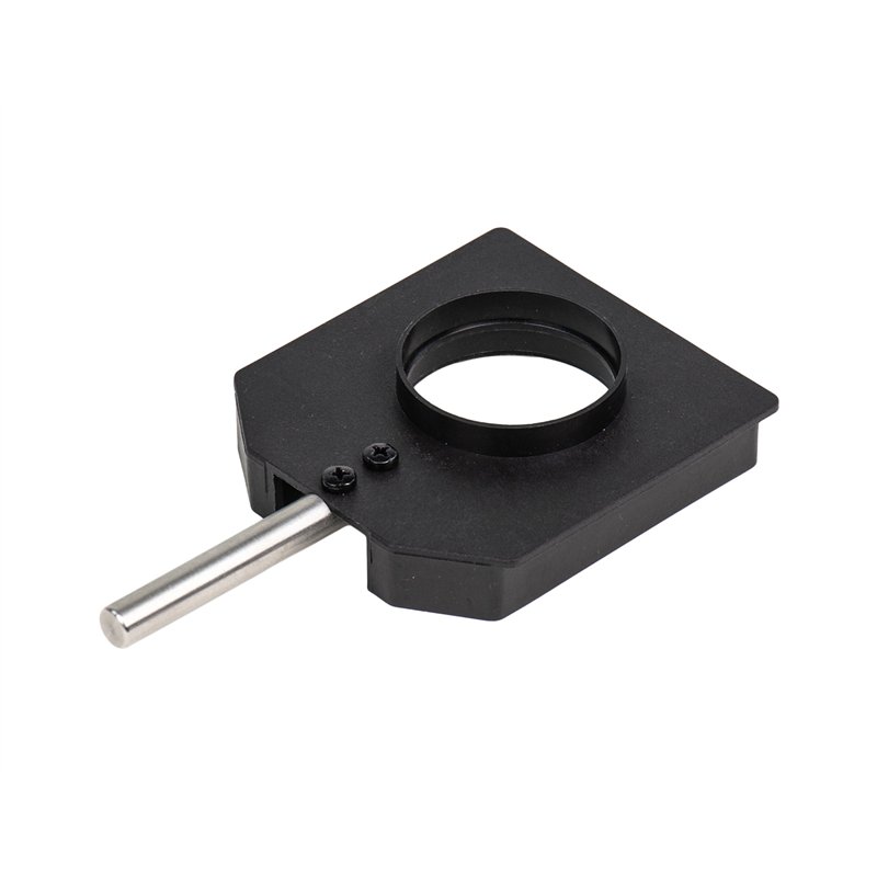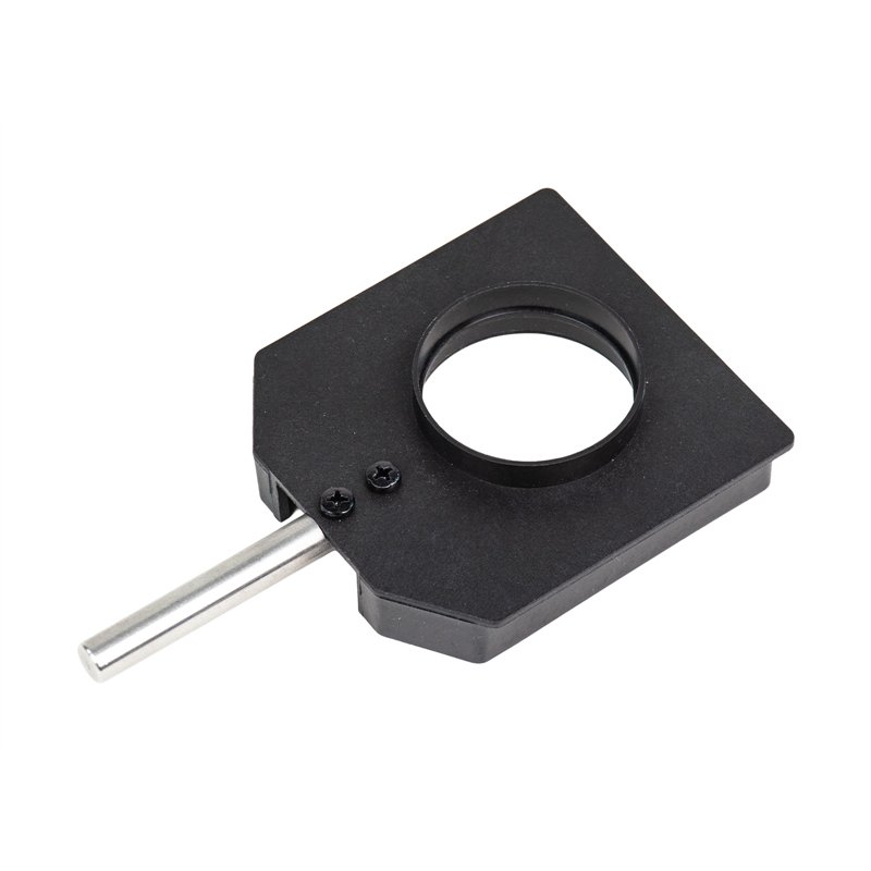 very stable holder with mounting ring for optical components in mounts and slide and aperture holders can be attached; the lens holder can be fixed in a rider on the optical bench using a fixed stem