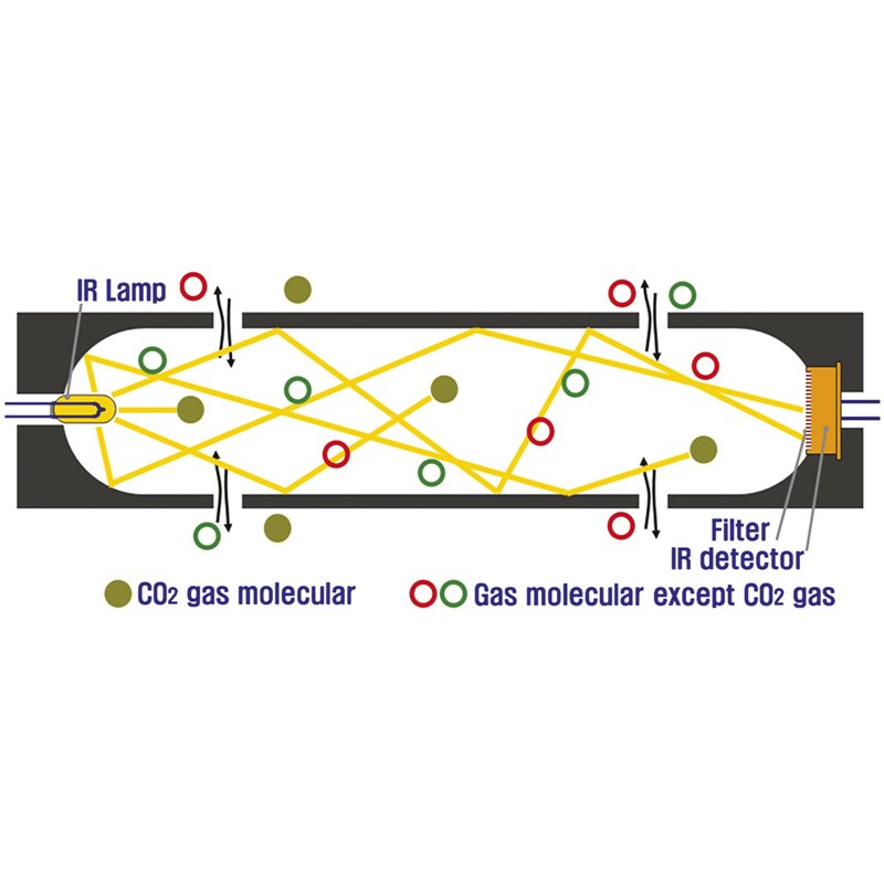 For measuring the concentration of carbon dioxide in the air or in enclosed spaces.